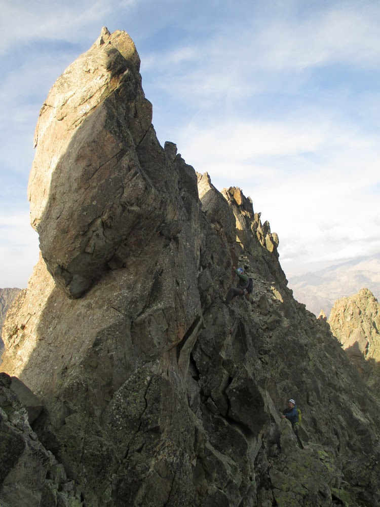 Flanqueamos un gendarme por nuestra derecha con algún pequeño destrepe muy delicado (III+),