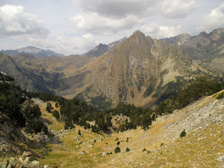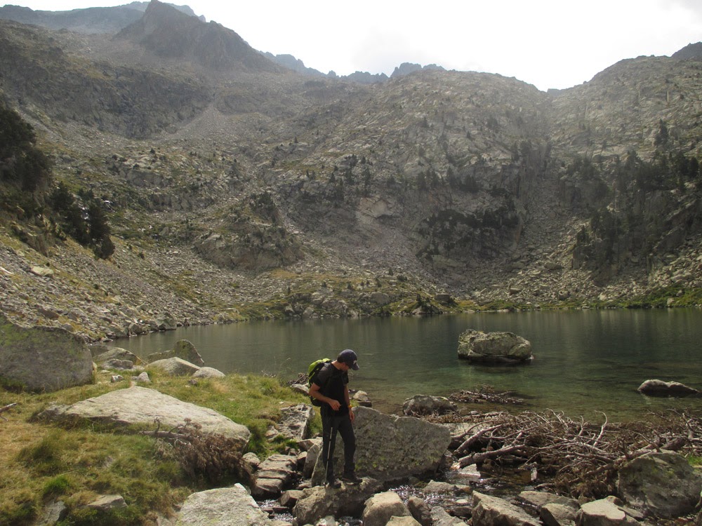 Subimos por el barranco de Respumoso en dirección al Balaitous hasta una zona llana y herbosa donde nos desviamos a nuestra derecha (30') pasando junto a un vivac bastante bueno y siguiendo hitos. Descendemos al torrente que baja del Ibón de Esclusera, el cual seguimos hasta un punto en el que podemos superar la muralla rocosa de nuestra derecha y al rato encontramos una buena zona para vivaquear ya casi de noche a pocos metros por encima del torrente (1h).